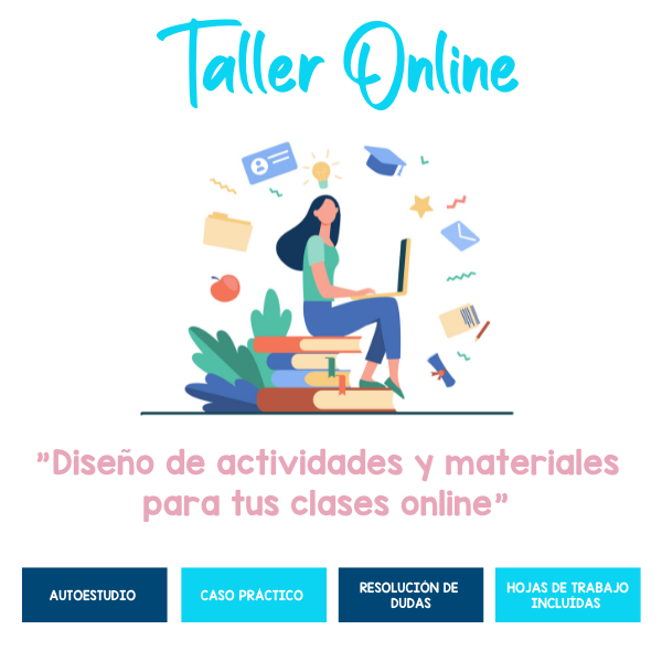 ¡Consigue este taller si quieres aprender a diseñar actividades y materiales adaptados 100x100 al entorno online y a las necesidades de tus alumnos!